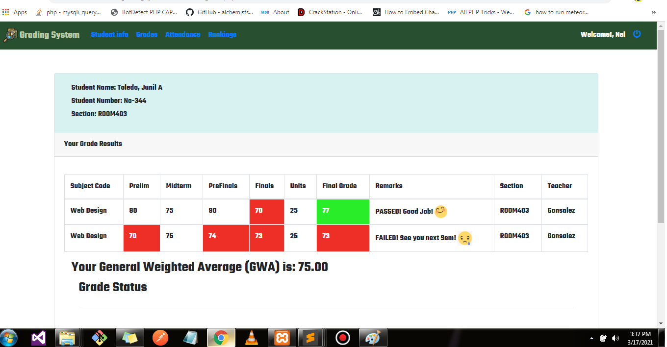 This Student Grading Results System for Colleges will help us to know if the student has passed or failed in his / her grade in the exam done at our school. Here we will